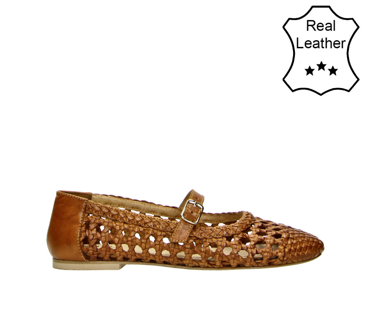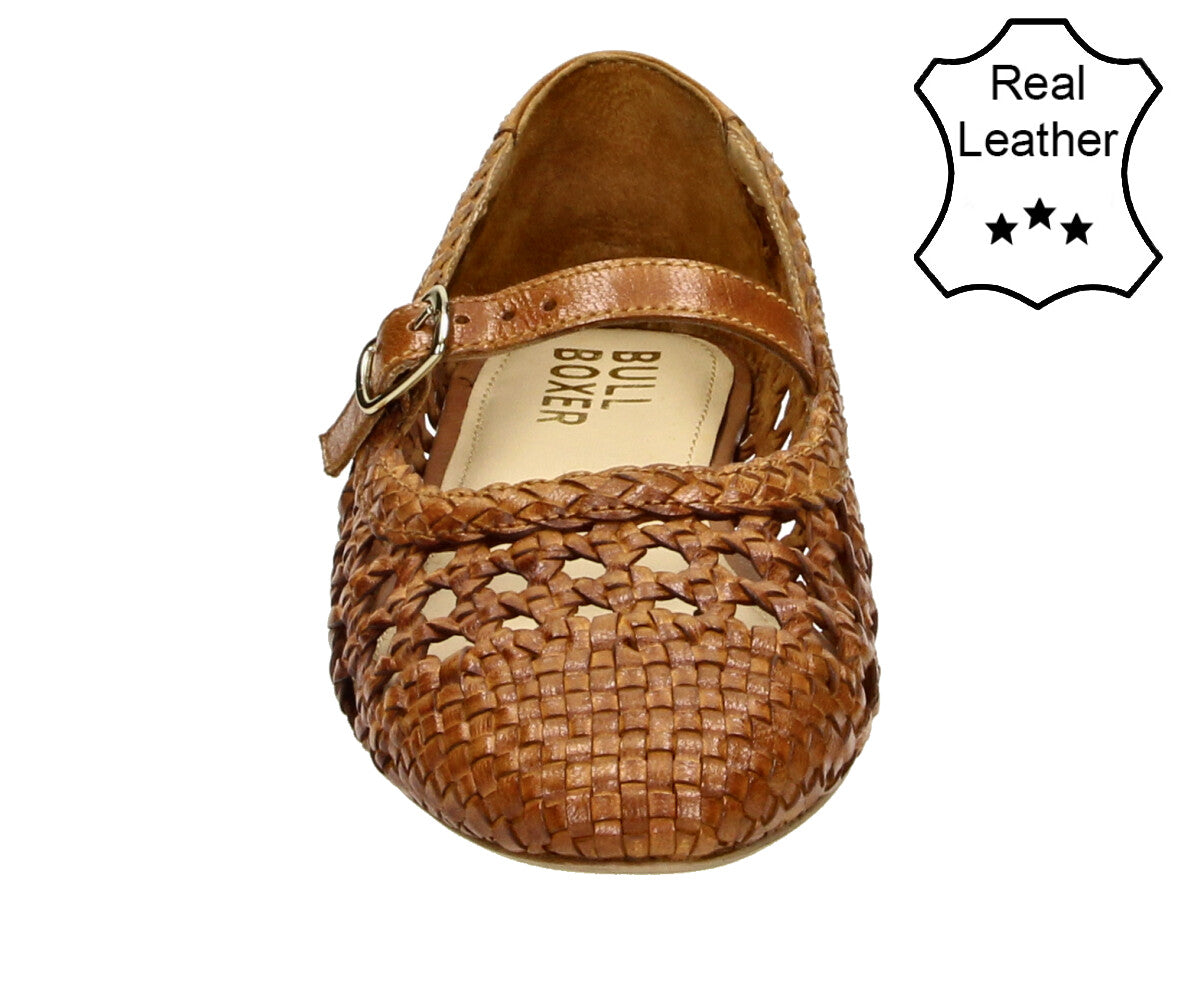 The Bullboxer 6YY0832001 3300 Cognac Leather Interwoven Ballerina combines timeless style with modern details. Featuring a beautifully woven cognac leather upper. Perfect for any occasion, from casual outings to more polished looks, these shoes are designed to provide both elegance and comfort for all-day wear.