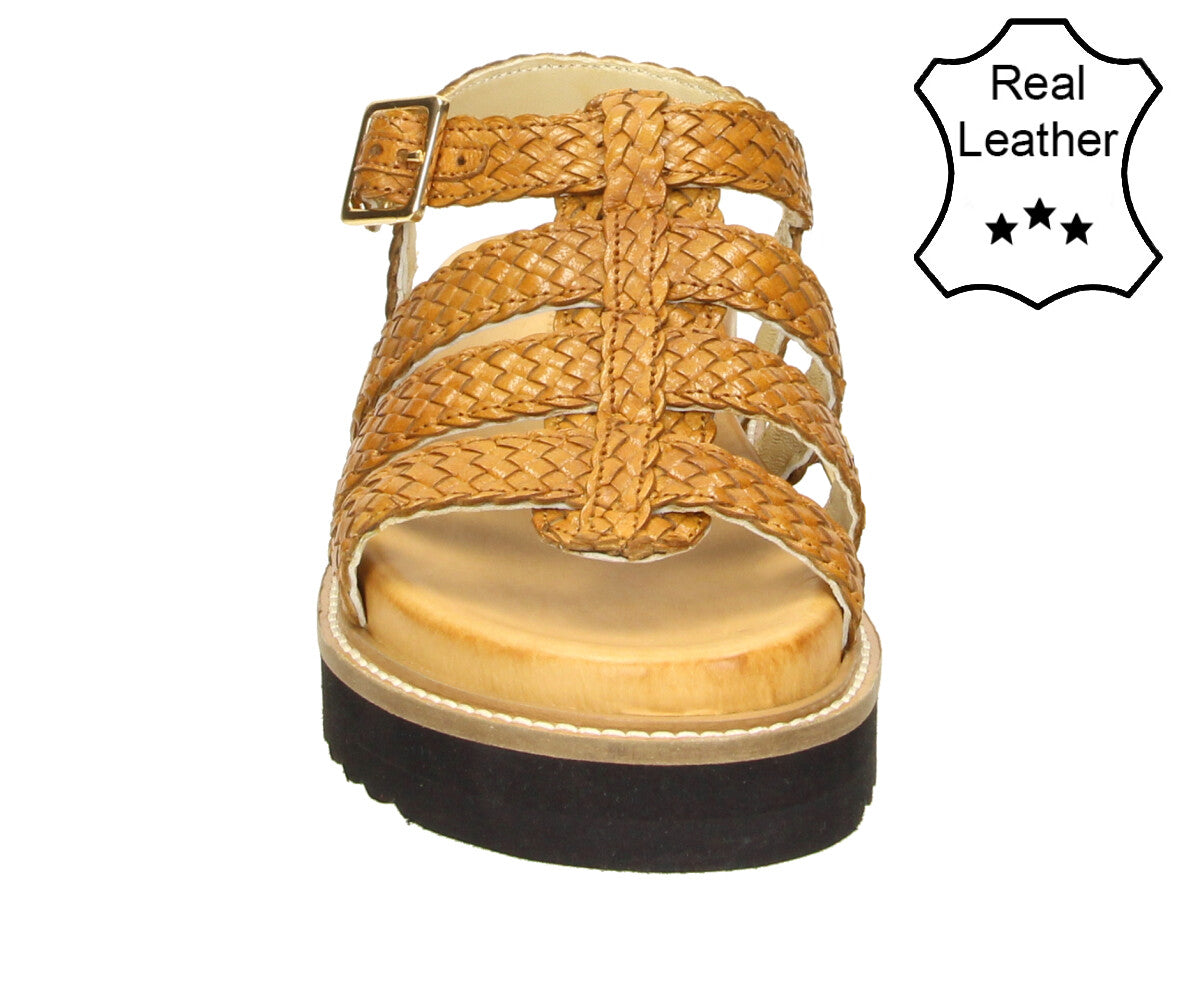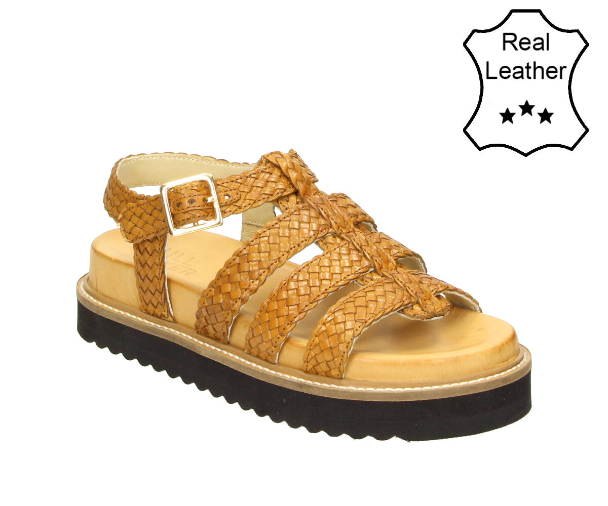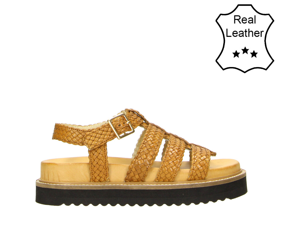 Make a stylish impression with the 6GL0091002 3300 cognac gladiator-style sandal. Featuring beautifully woven straps in a warm cognac hue and an adjustable buckle closure, this sandal pairs a bold design with everyday comfort. The flatform sole adds just the right amount of height to elevate any summer look.