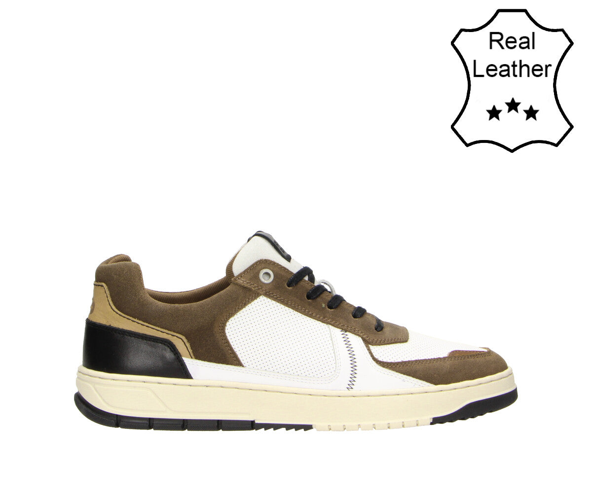 The Bullboxer 7LT0010101 1135 White-Dark Brown Leather Men's Sneaker is a great mix of casual and classy. With a clean white leather design and dark brown details, it’s easy to pair with any outfit, whether you’re running errands or heading out with friends.